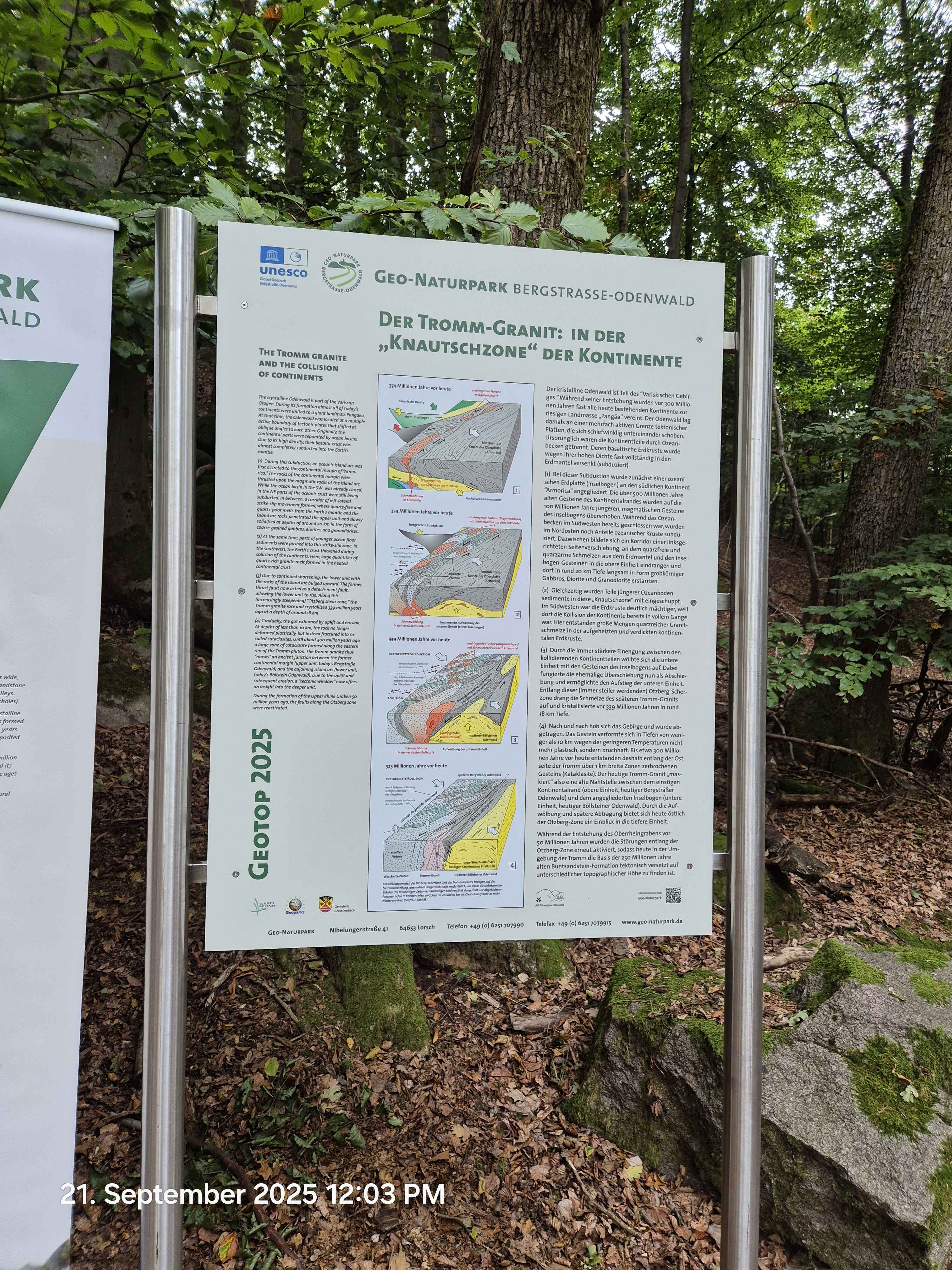 Eindrücklich erklärte Weber die Entstehung des Oberrheingraben vor rund 50 Millionen Jahren, in dessen Folge sich der Odenwald einseitig heraushob. Die überlagernden Gesteinsschichten wurden bis auf den kristallinen Untergrund abgetragen und gelangten als Ablagerungen in den absinkenden Oberrheingraben. Sie schloss mit den Worten: „Der Tag des Geotops soll uns vor Augen führen, aus der Erdgeschichte zu lernen, um unsere Gegenwart und Zukunft lebenswert zu gestalten – das bedeutet, sorgsam mit unserem Planeten umzugehen, denn wir haben nur den einen.“
