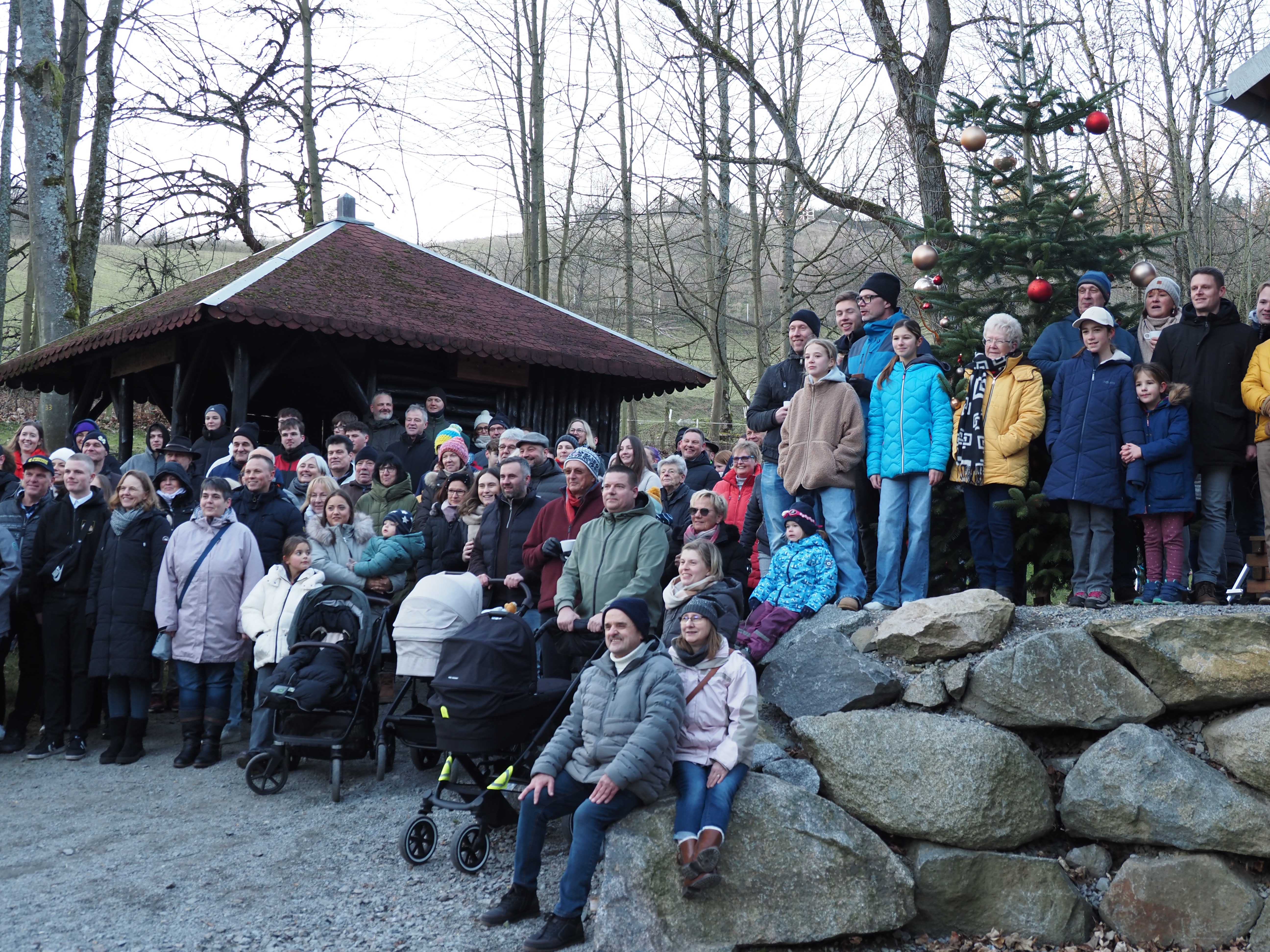 Erwartungsvoll: ganz Elmshausen inklusive Weihnachtsbesuch fanden sich pünktlich am Striethteich ein...