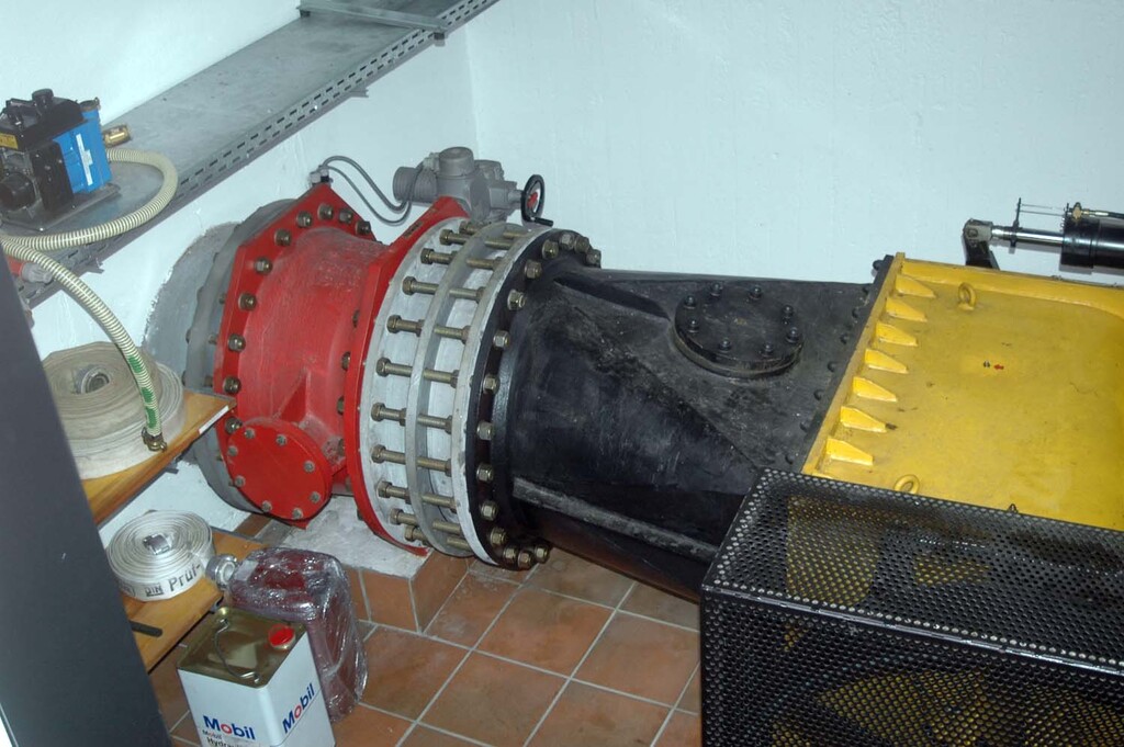 Dieser Tunnel beginnt im Dienstgebäude am südlichen Ende der Staumauer und führt bis unter den Überlauf, hier führt eine Leiter 15 m in die Höhe. Diese Leiter darf nur mit Kletterausrüstung von Mitarbeitern benutzt werden. Die Exkursionsteilnehmer durften jedoch durch die gesamte Länge des Tunnels ca 50 Meter bis zum Überlauf gehen.