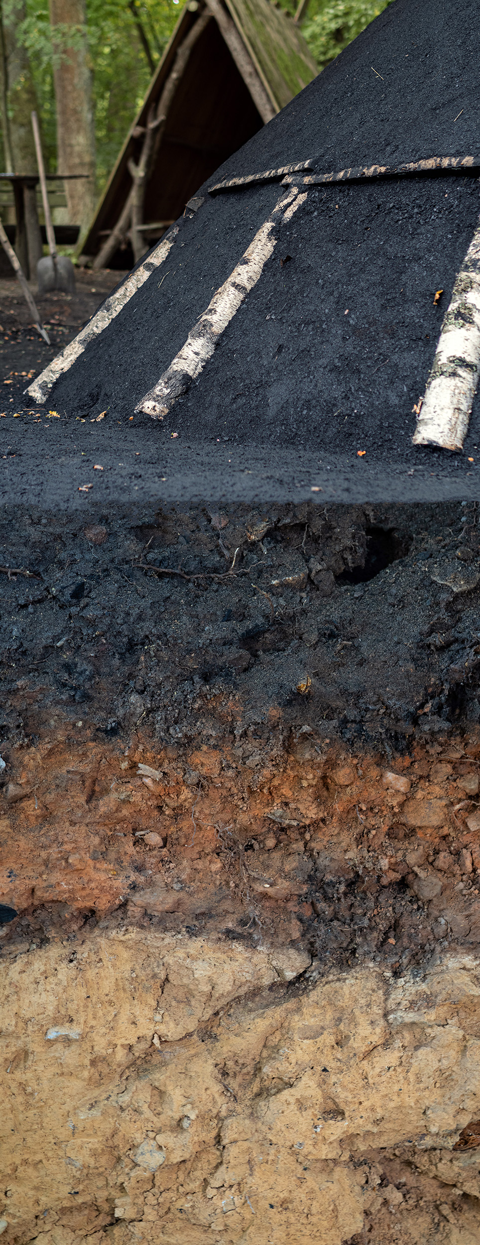 Jede Bodenschicht ist ein Kapitel der Natur- und Kulturgeschichte – ein stiller Zeuge früherer Landschaften, Lebensräume und Klimabedingungen. Boden spielt eine zentrale Rolle als Lebensgrundlage, Klimaschützer und Wissensspeicher der Erde. Von der Filterung unseres Trinkwassers bis zur Speicherung von Kohlenstoff brauchen wir ihn. Als Beispiel auf dem Plakat wird ein Kohlenmeiler gezeigt: der Kohlenmeilerboden erzählt von der historischen Waldnutzung und der früheren Bedeutung von Holzkohle als Energieträger.