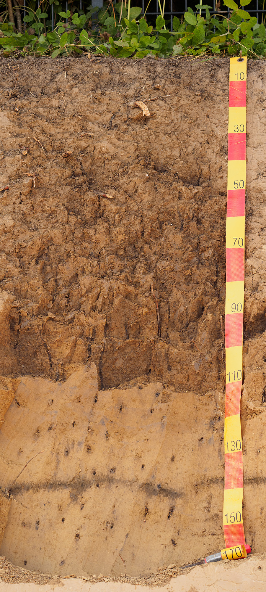 Lössboden mit schwarzem Ascheband, das vor ca. 18 000 Jahren nach Vulkanausbrüchen in der Eifel im Hintertaunus abgelagert wurde © HLNUG