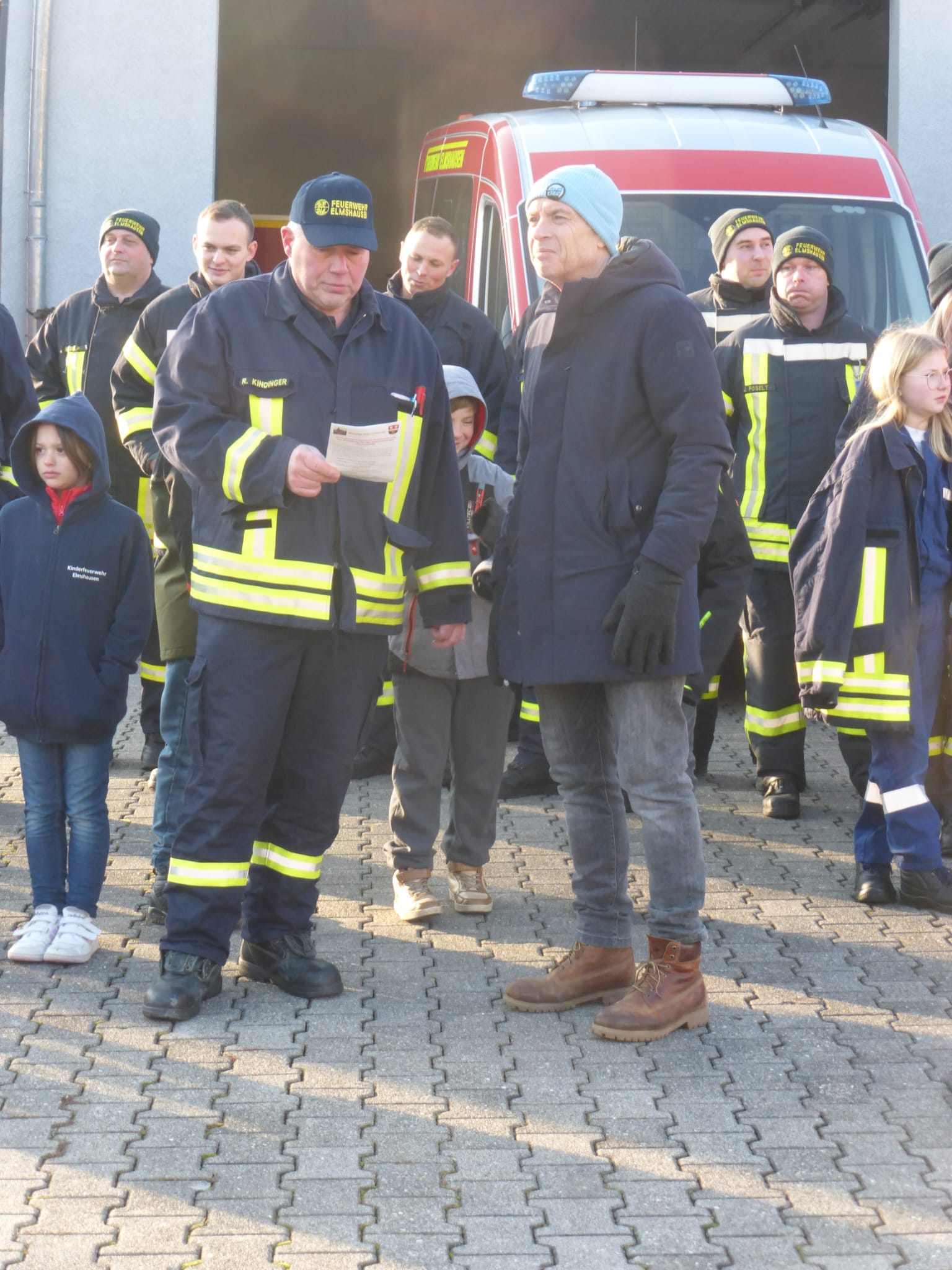 Kinder-, Jugend-, Einsatzabteilung, Feuerwehrfrauen angetreten. Ralf stellt u.a. „Leuchtturm“ vor.