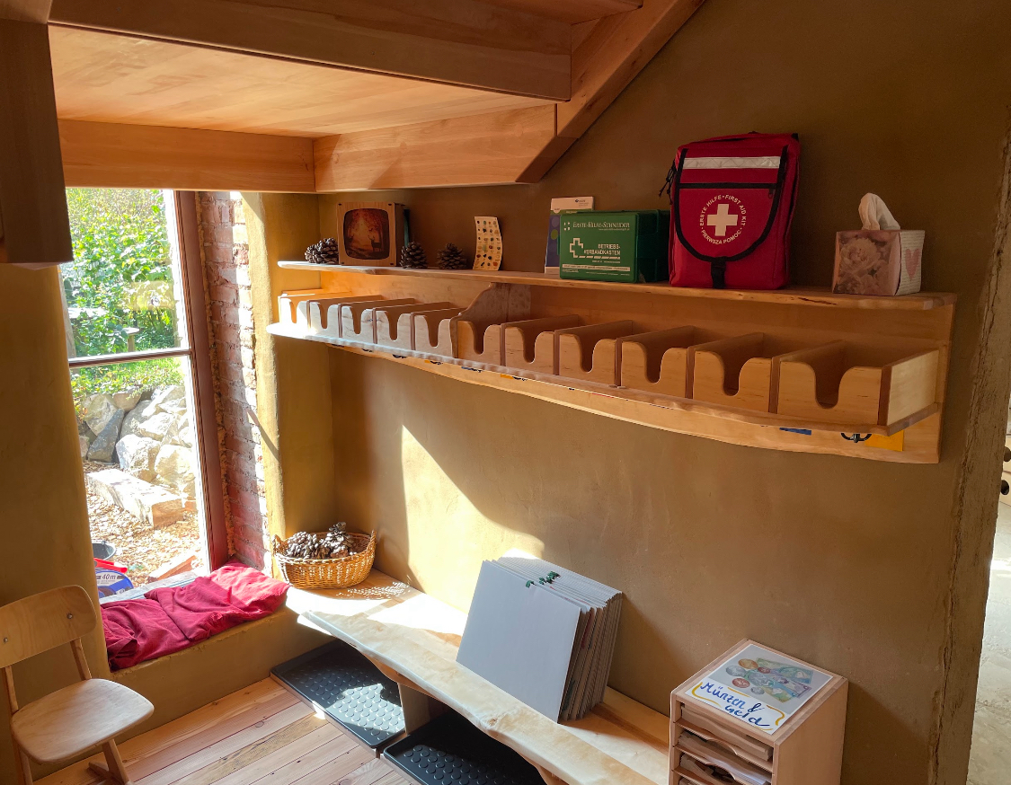 Ein herzliches Ankommen beginnt schon im Eingangsbereich – und genau dort nimmt die Freie Dorfschule Modautal weiter Form an. Gemeinsam mit der lokalen Schreinerei Matalia ist ein ganz besonderes Möbelstück entstanden: unsere neue Garderobe. Gefertigt aus heimischem Birkenholz, ökologisch geölt und mit einer organisch geschwungenen Baumkante, verbindet sie pädagogische Funktionalität mit Ästhetik. Jedes Element ist handgemacht mit Liebe zum Detail, jedes Stück Holz erzählt seine eigene Geschichte.