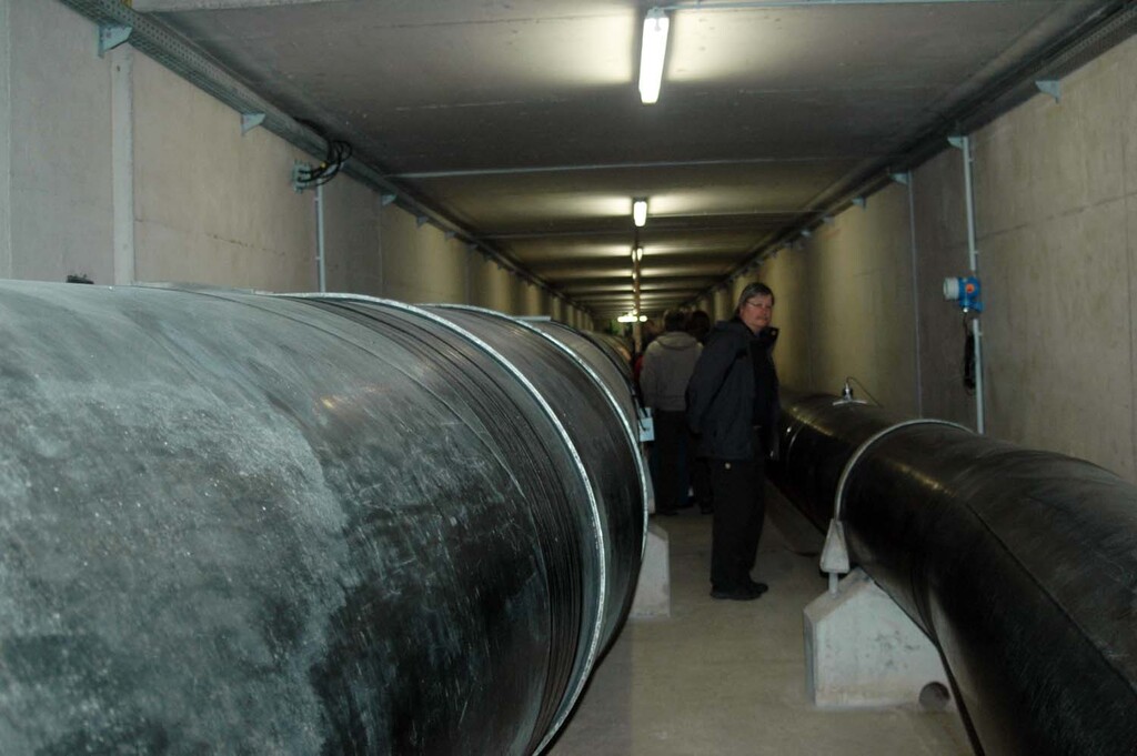 Dieser Tunnel beginnt im Dienstgebäude am südlichen Ende der Staumauer und führt bis unter den Überlauf, hier führt eine Leiter 15 m in die Höhe. Diese Leiter darf nur mit Kletterausrüstung von Mitarbeitern benutzt werden. Die Exkursionsteilnehmer durften jedoch durch die gesamte Länge des Tunnels ca 50 Meter bis zum Überlauf gehen.
