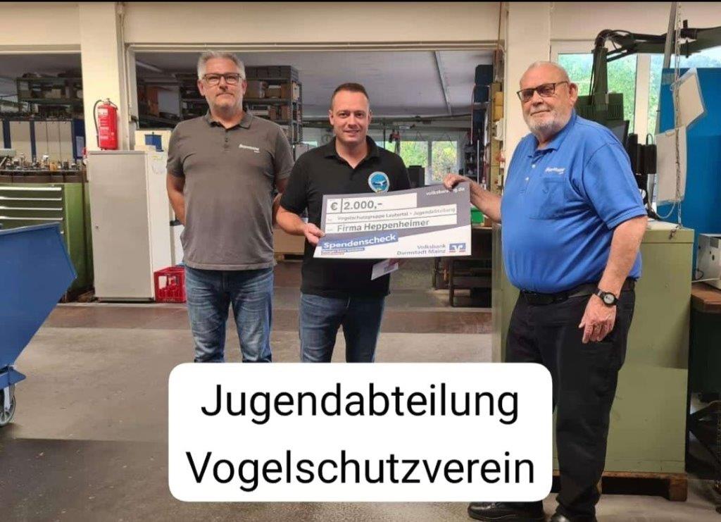 Zum 80-jährigen Jubiläum überreichte Firma Heppenheimer Spenden an vier Vereine: Bergwacht Heppenheim, Jugendfeuerwehr Reichenbach, Jugendabteilung des TSV Reichenbach und Jugendarbeit Vogelschutzverein Reichenbach.